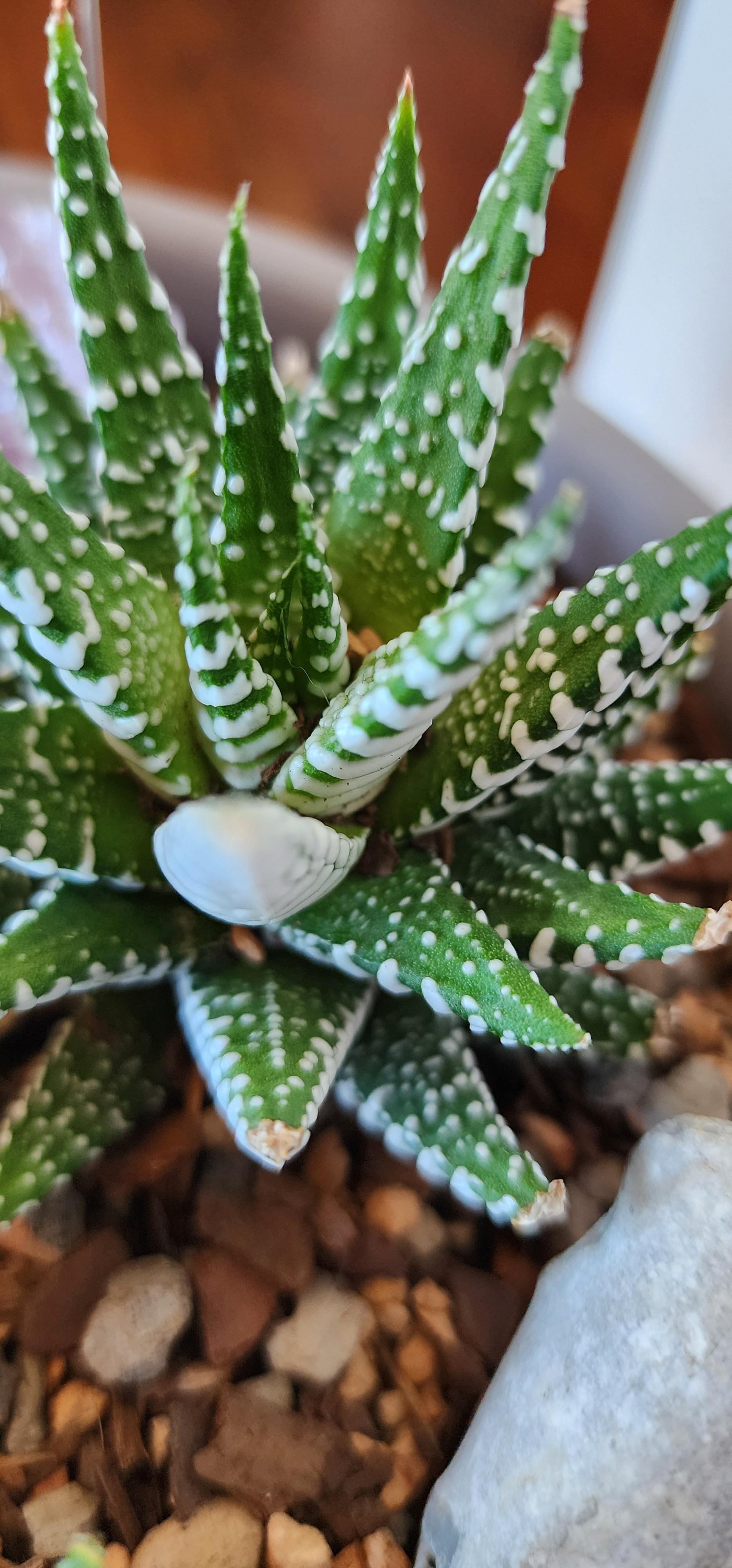 Haworthiopsis / Haworthia 'Big Band' - Zebra Plant: White ridges formed horizontally across dark green foliage resembles zebra striping. Great indoor plant on sunny or bright windowsills. Needs good drainage. Heat and drought tolerant. Tender soft succulent - will not tolerate frost.