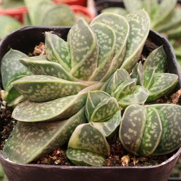 Gasteria are similar to Haworthia, but these plants tend to grow longer leaves which look like tongues. The produce beautiful orange flowers every year and add a lot of interest to a garden.